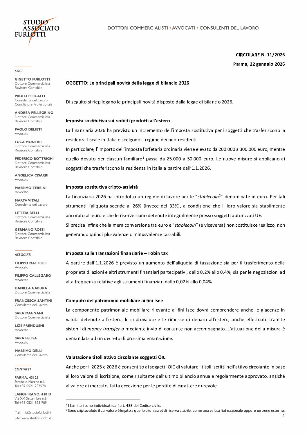 Circolare 2026.11 – Le principali novità della legge di bilancio 2026