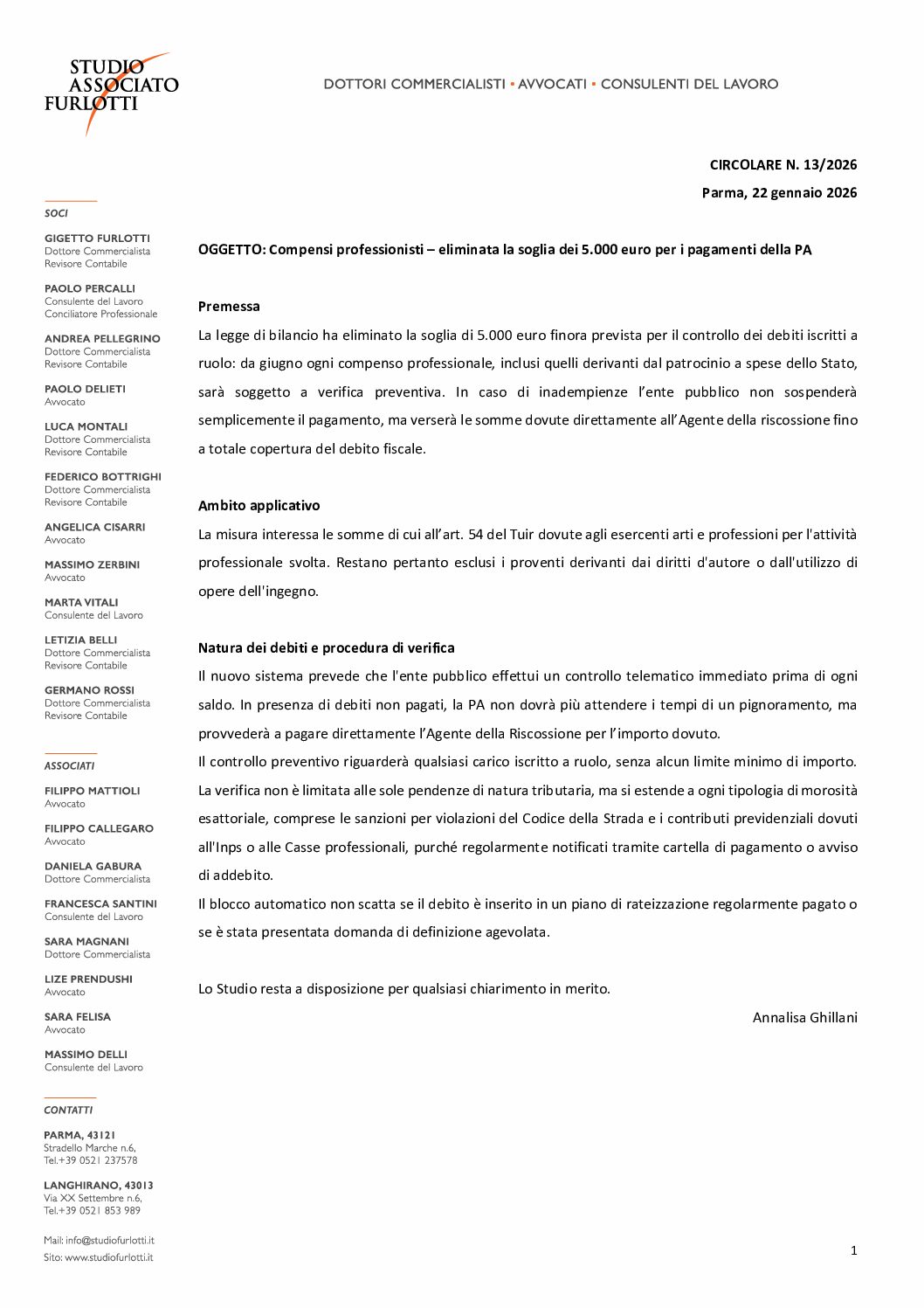 Circolare 2026.13 – Compensi professionisti – eliminata la soglia dei 5.000 euro per i pagamenti della PA