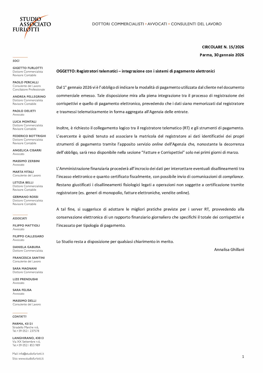 Circolare 2026.15 – Registratori telematici – integrazione con i sistemi di pagamento elettronici