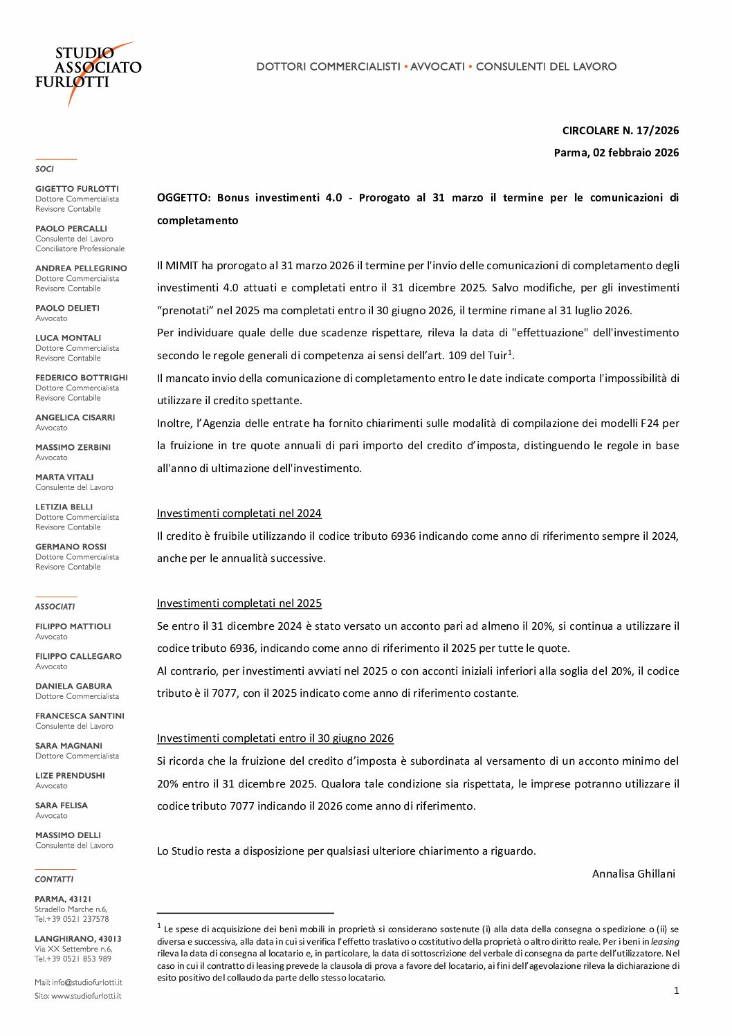 Circolare 2026.17 – Bonus investimenti 4.0 – Prorogato al 31 marzo il termine per le comunicazioni di completamento