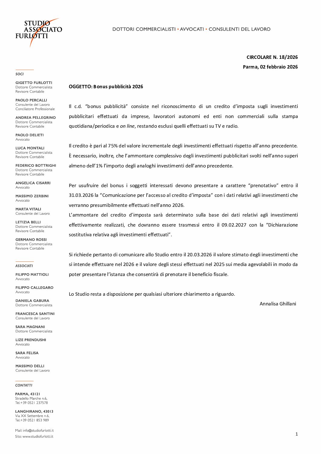 Circolare 2026.18 – Bonus pubblicità 2026