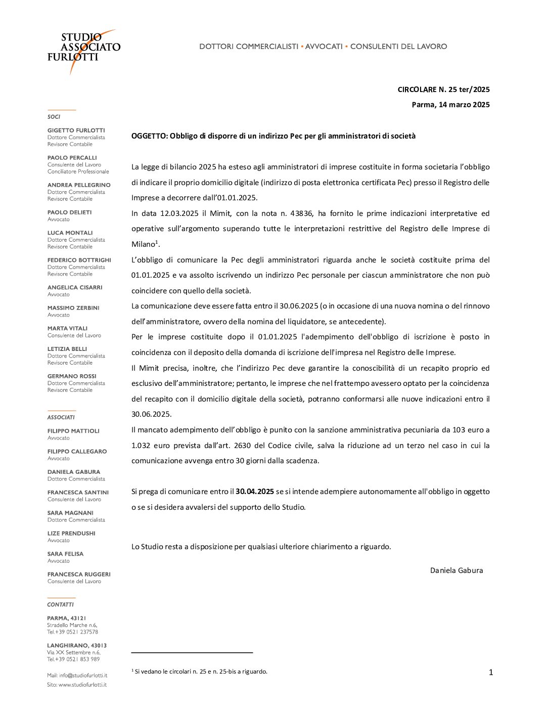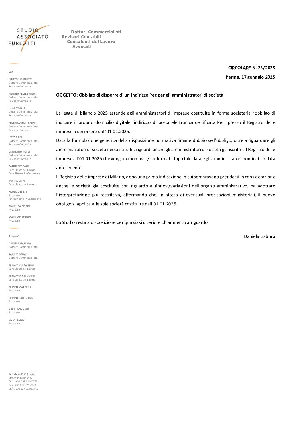 2025.25 Obbligo Pec per gli amministratori