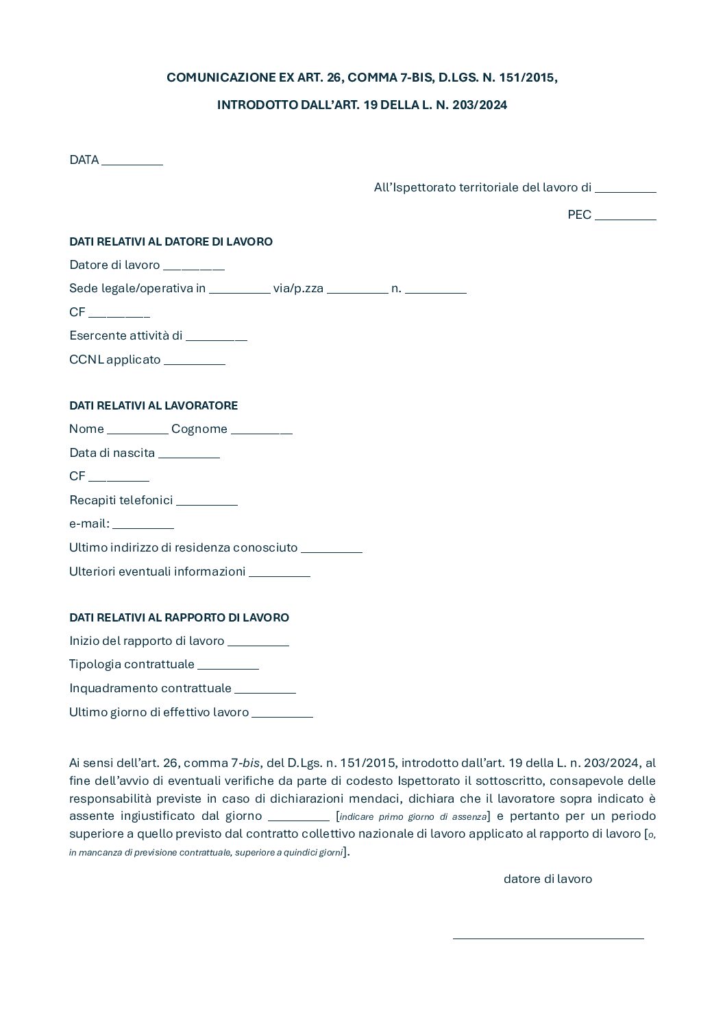 2025.30 All1 Modello comunicazione art. 26 comma 7 bis D.Lgs_. n. 151 2015