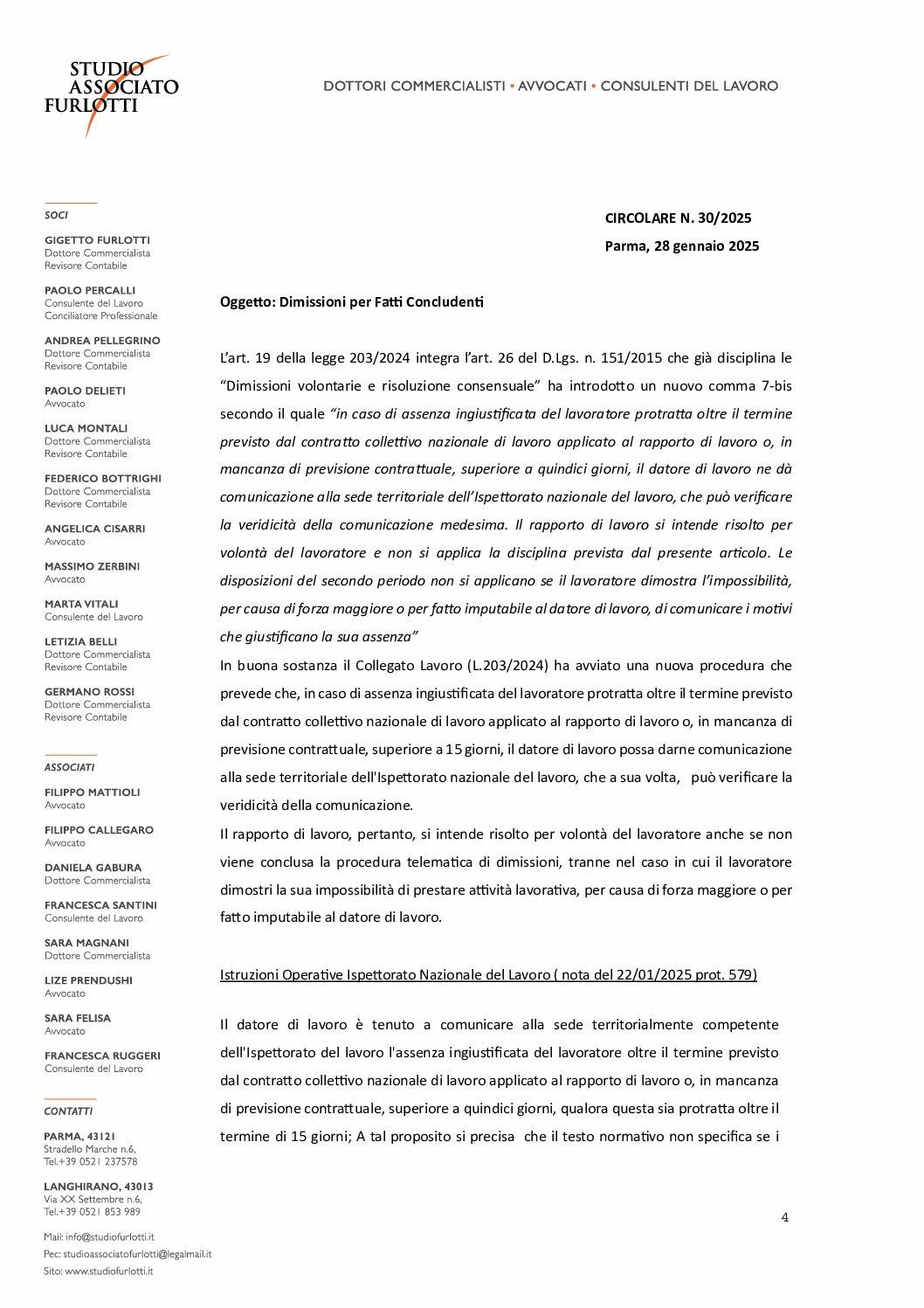 2025.30 Dimissioni per fatti Concludenti