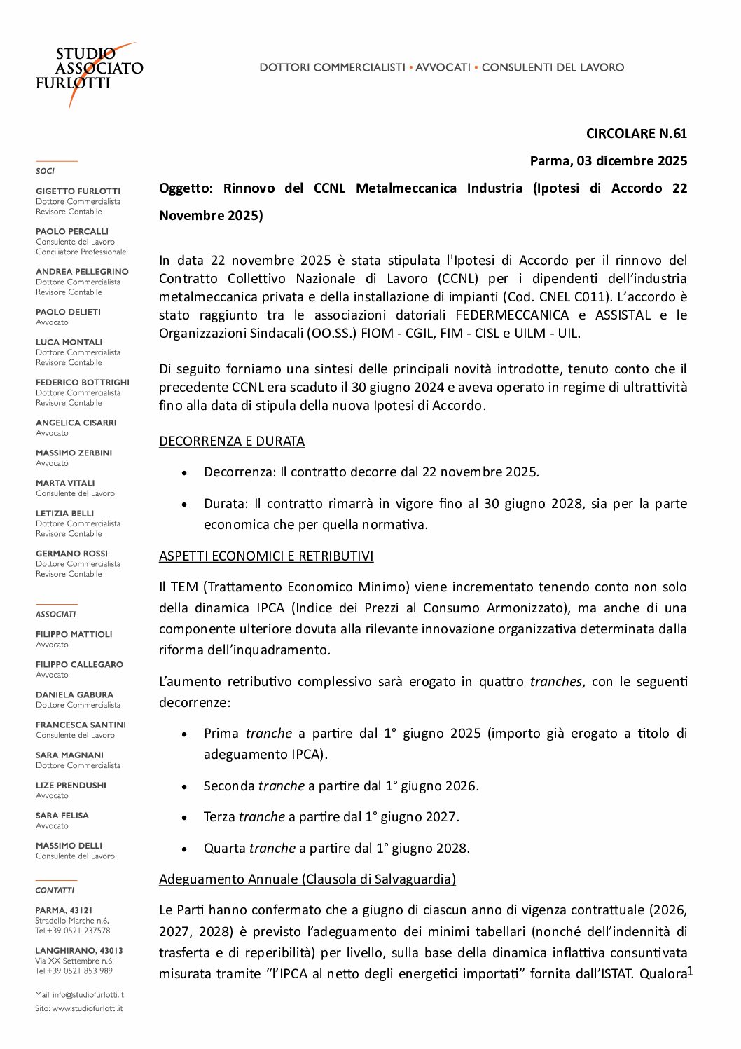 2025.61 Rinnovo CCNL Metalmeccanica Industria