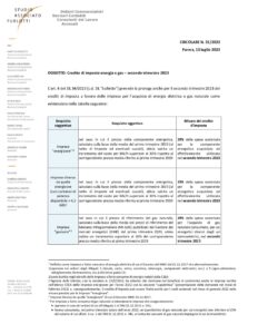 2023.32 Credito di imposta energia e gas secondo trimestre 2023