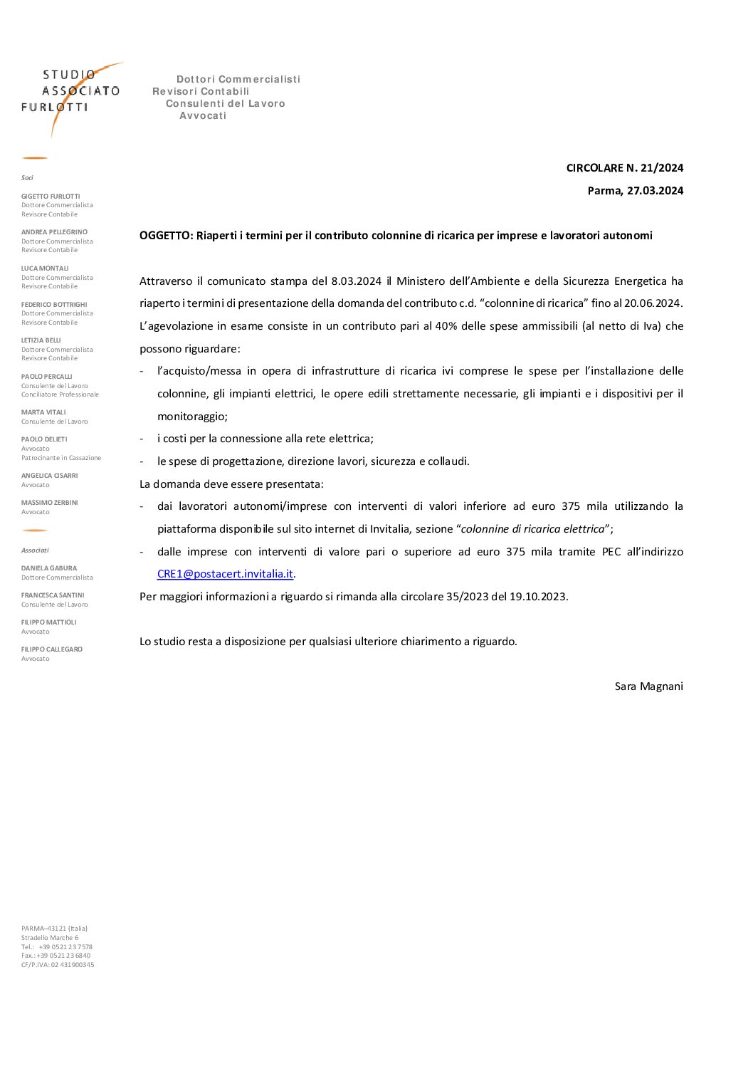 2024.21 Riaperti i termini per il contributo colonnine di ricarica per imprese e lavoratori autonomi