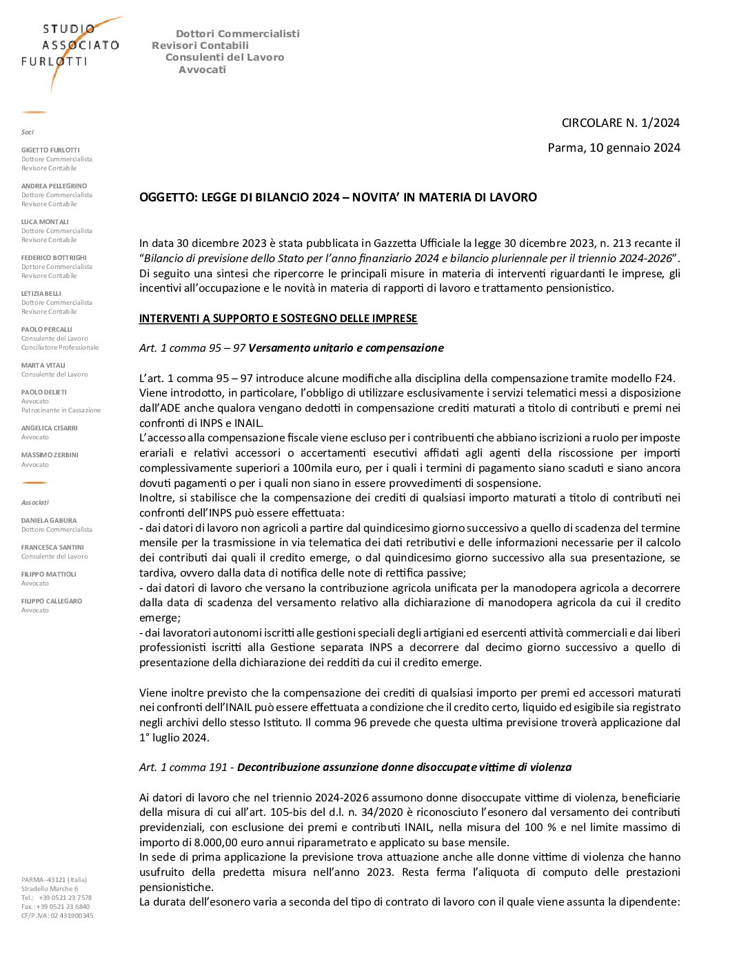 2024.01 Legge di Bilancio 2024 Novità in materia di Lavoro