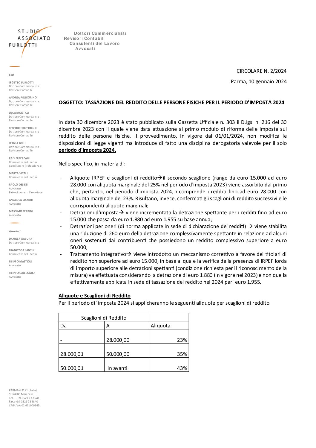 2024.02 Tassazione Reddito Persone Fisiche anno 2024