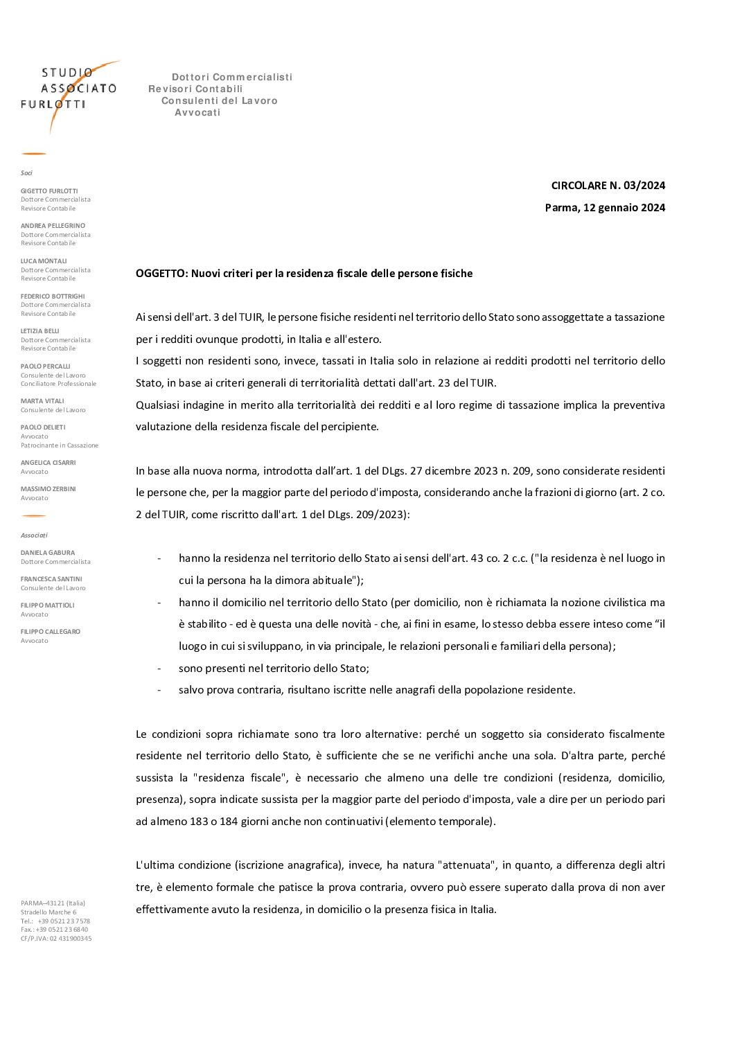 2024.03 Nuovi criteri per la residenza fiscale delle persone fisiche
