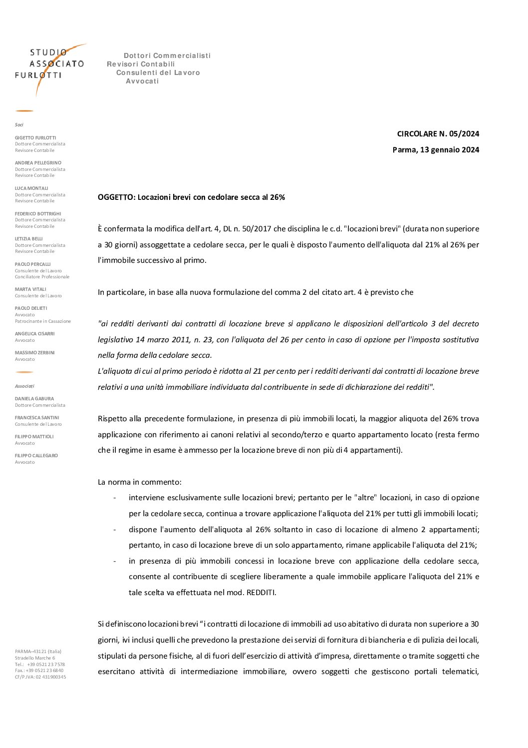 2024.05 Locazioni brevi con cedolare secca al 26
