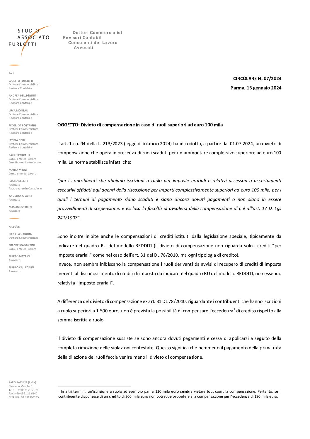 2024.07 Divieto di compensazione in caso di ruoli superiori ad euro 100 mila
