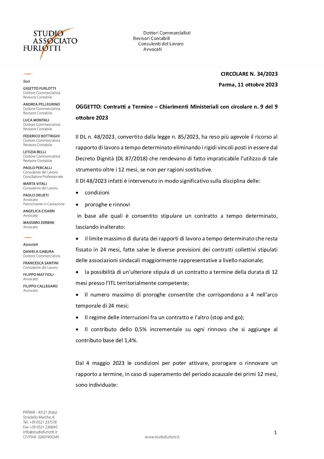 2023.33 Contratti a Termine Chiarimenti Ministeriali Circ. n. 9 del 9 ottobre 2023 1