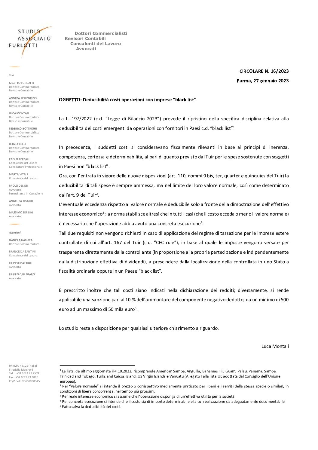 2023.16 Deducibilità costi operazioni con imprese black list