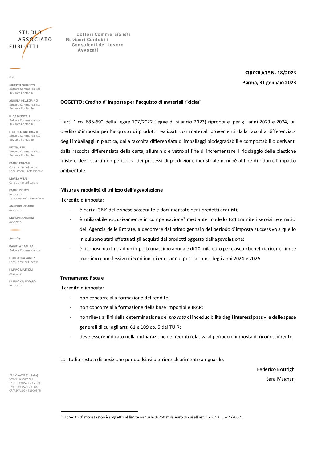 2023.18 Credito di imposta per l’acquisto di materiali riciclati