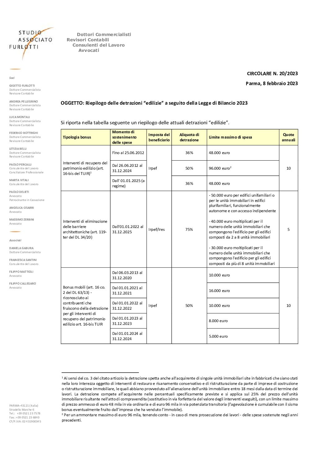 2023.20 Riepilogo delle detrazioni edilizie a seguito della Legge di Bilancio 2023