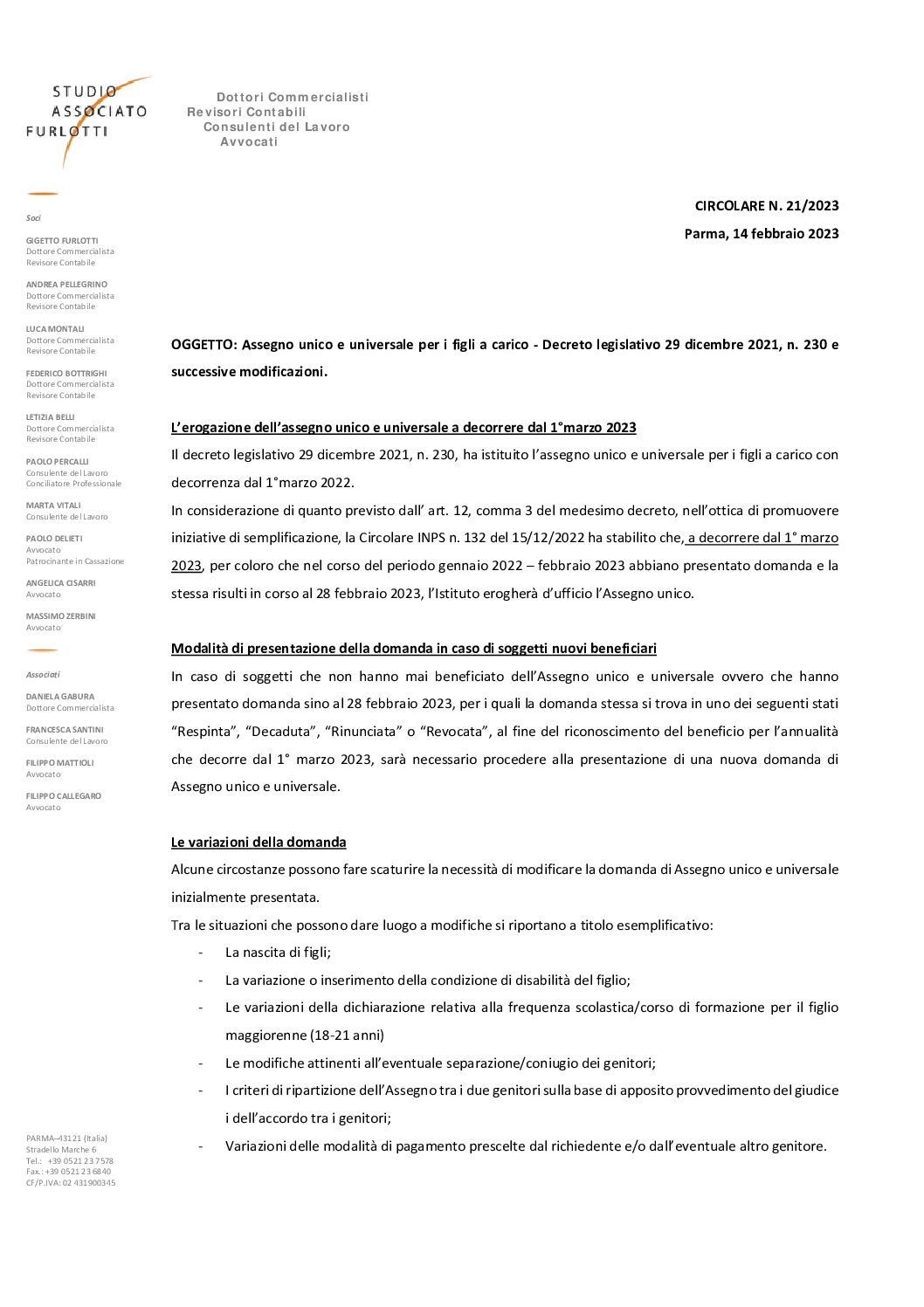 2023.21 Assegno unico universale novità dal 1° marzo 2023