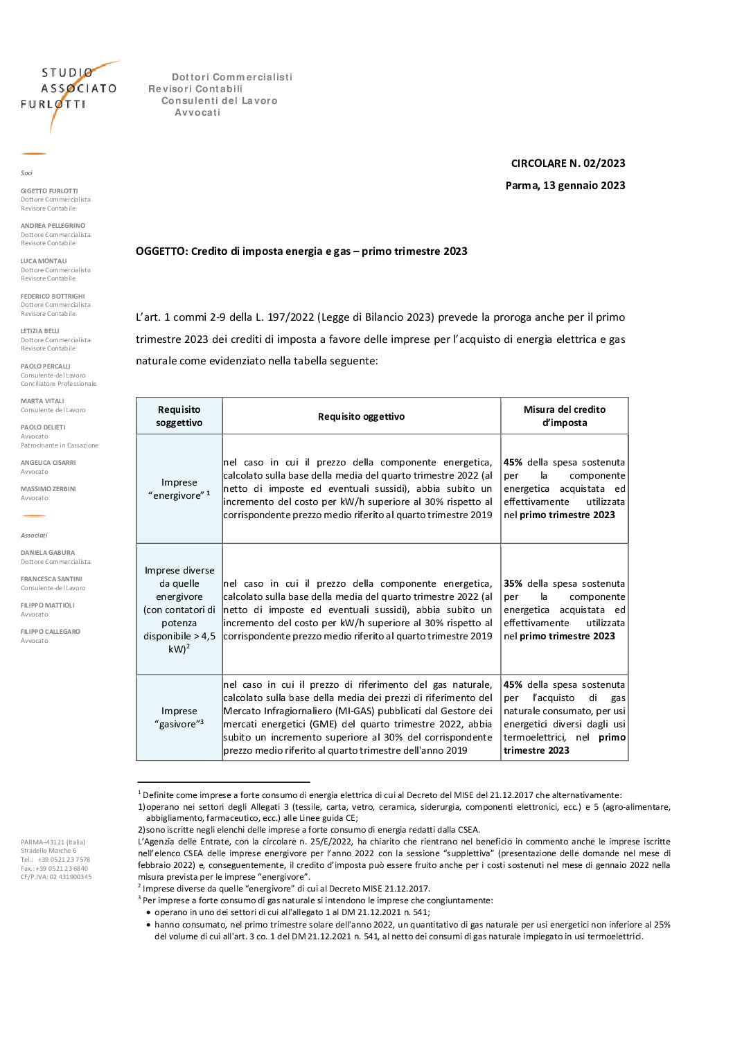 2023.02 Credito di imposta energia e gas primo trimestre 2023
